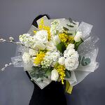 Willow - 2 pcs Lisianthus - 5 pcs Mimosa - 2 pcs tulips - 5 pcs