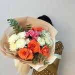 Chrysanthemum bush - 2 pcs Eucalyptus - 1 pcs Rose - 4 pcs Bush rose - 1 pcs