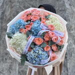 Hydrangea - 5 pcs Tape - 1 pcs Eucalyptus - 1 pcs Decoration - 1 pcs Spray rose - 7 pcs