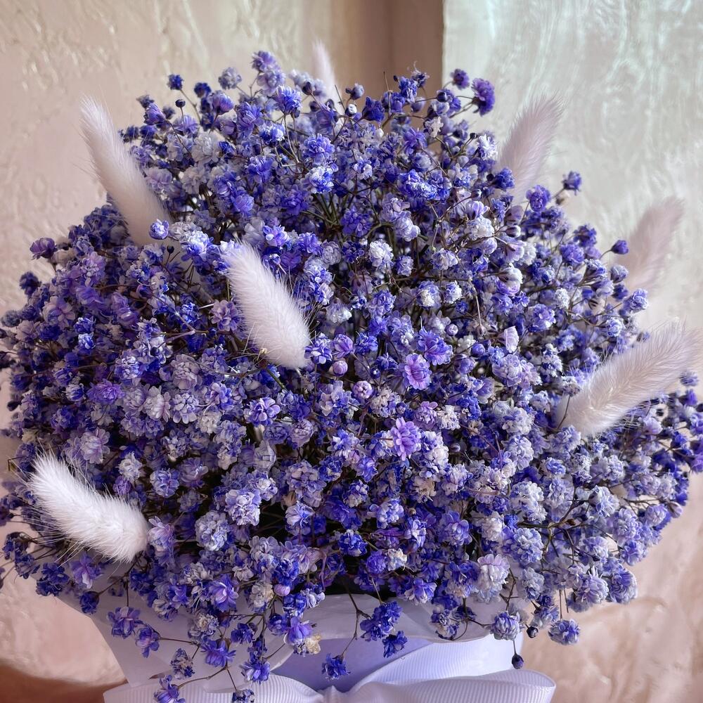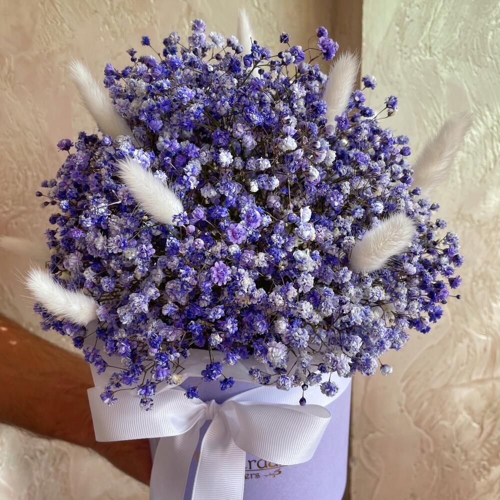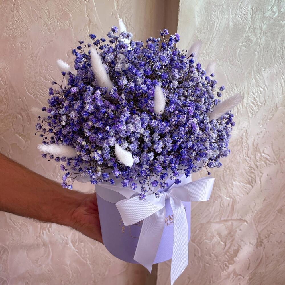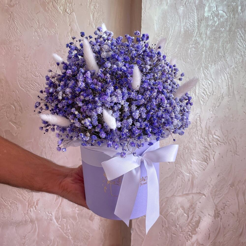 Gypsophila - 7 pcs Lagurus - 11 pcs Reps tape - 1 pcs hat box d15 - 1 pcs