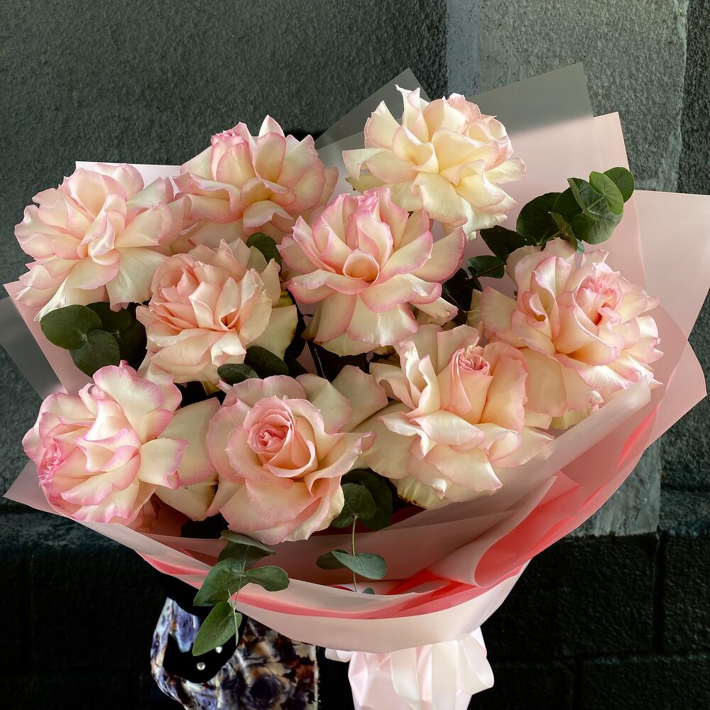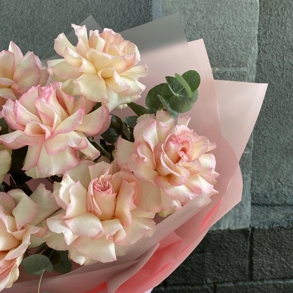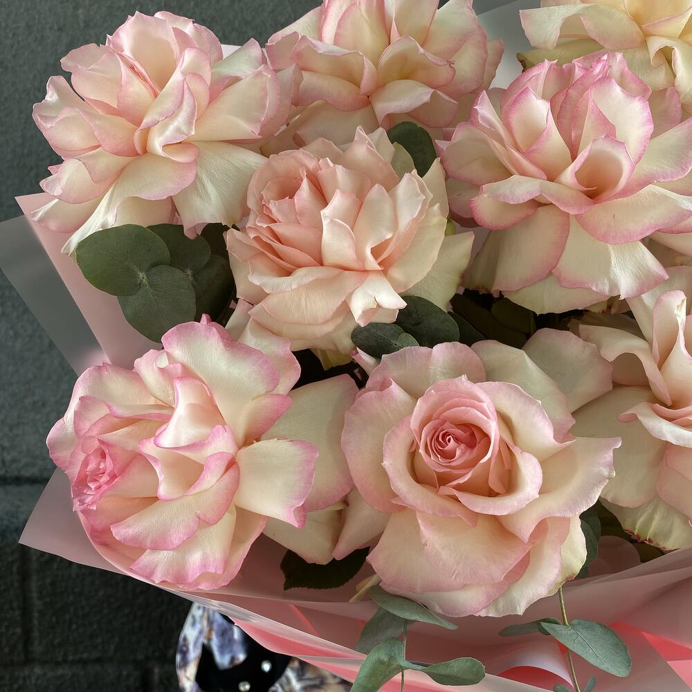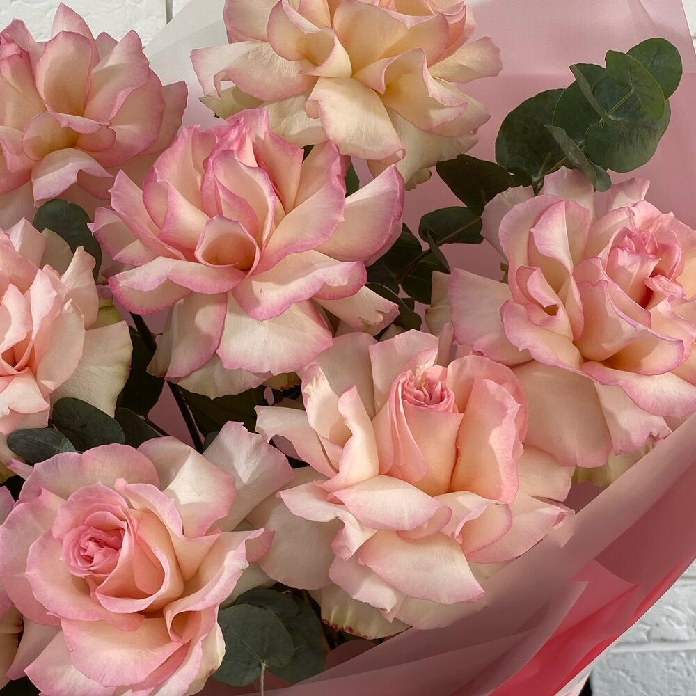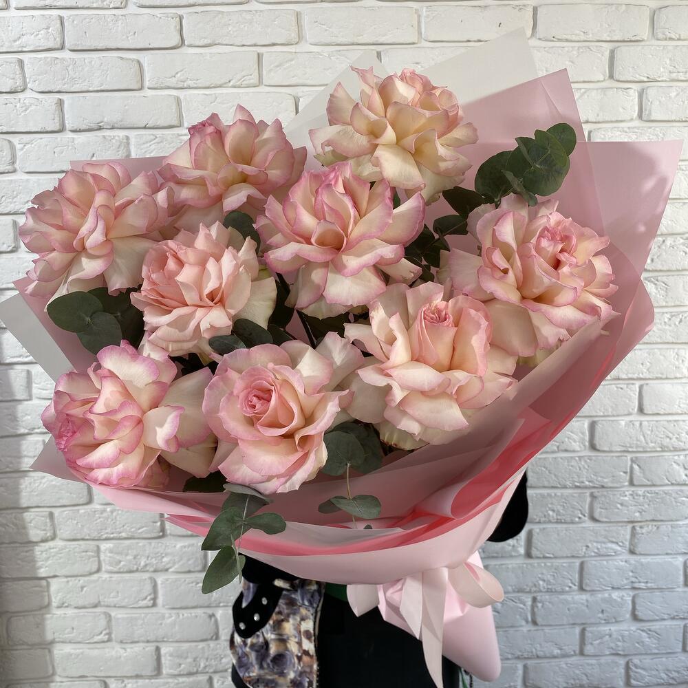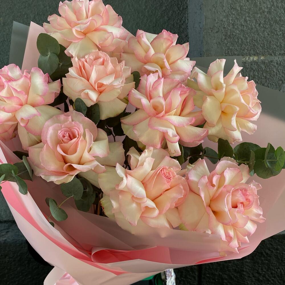 Eucalyptus - 4 pcs Satin ribbon - 1 pcs designer paper - 5 pcs roses ecuador - 9 pcs