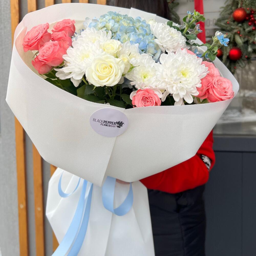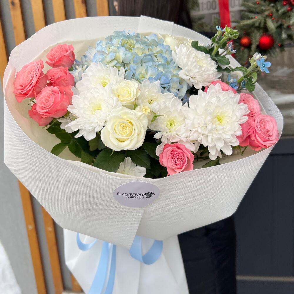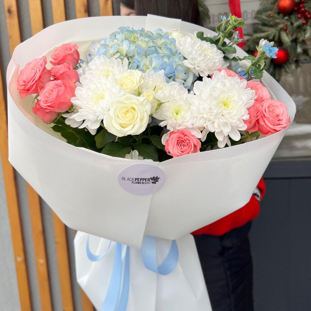 Hydrangea - 1 pcs Bush rose - 4 pcs The language of the input text is Russian, and it translates to "Tweedie" in English. - 2 pcs