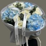 Hydrangea - 3 pcs Eucalyptus - 1 pcs roses - 18 pcs aqua paper - 1 pcs