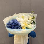 Hydrangea - 1 pcs Lily - 2 pcs Matthiola - 2 pcs Rose - 5 pcs chrysanthemum altai - 1 pcs