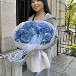 Нежный и стильный букет из крупных синих гортензий — символ искренности и утончённости. Подойдёт для особого повода или чтобы выразить заботу без слов.