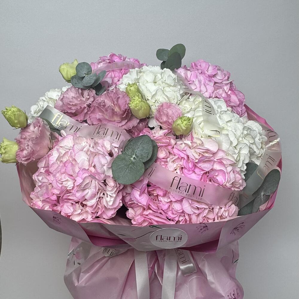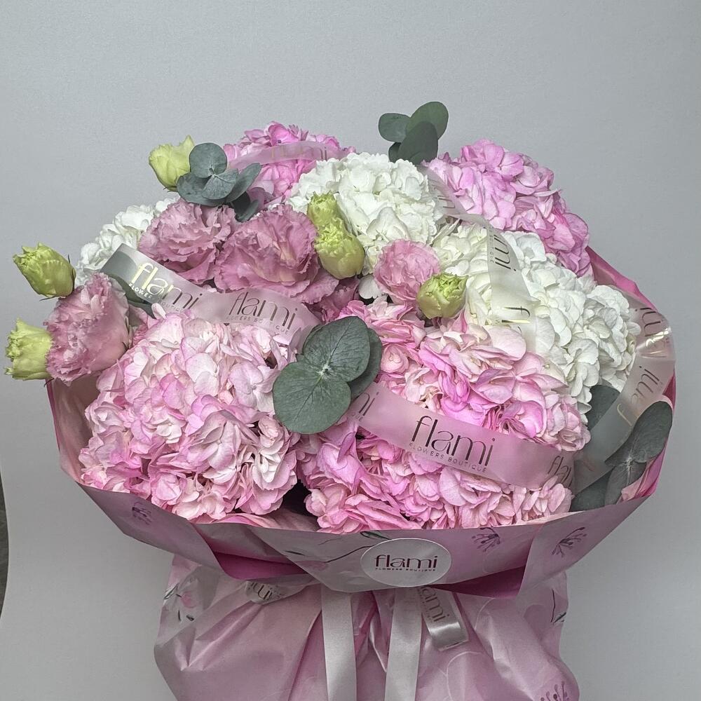 Lisianthus - 5 pcs Eucalyptus - 5 pcs пышные гортензии - 5 pcs