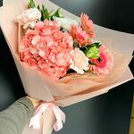 Alstroemeria - 2 pcs Hydrangea - 1 pcs Chrysanthemum - 1 pcs Packaging - 1 pcs Gerbera - 3 pcs Dianthus - 3 pcs