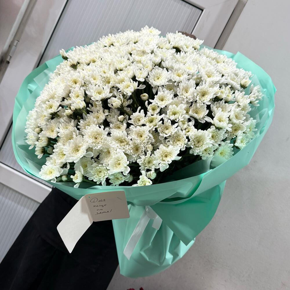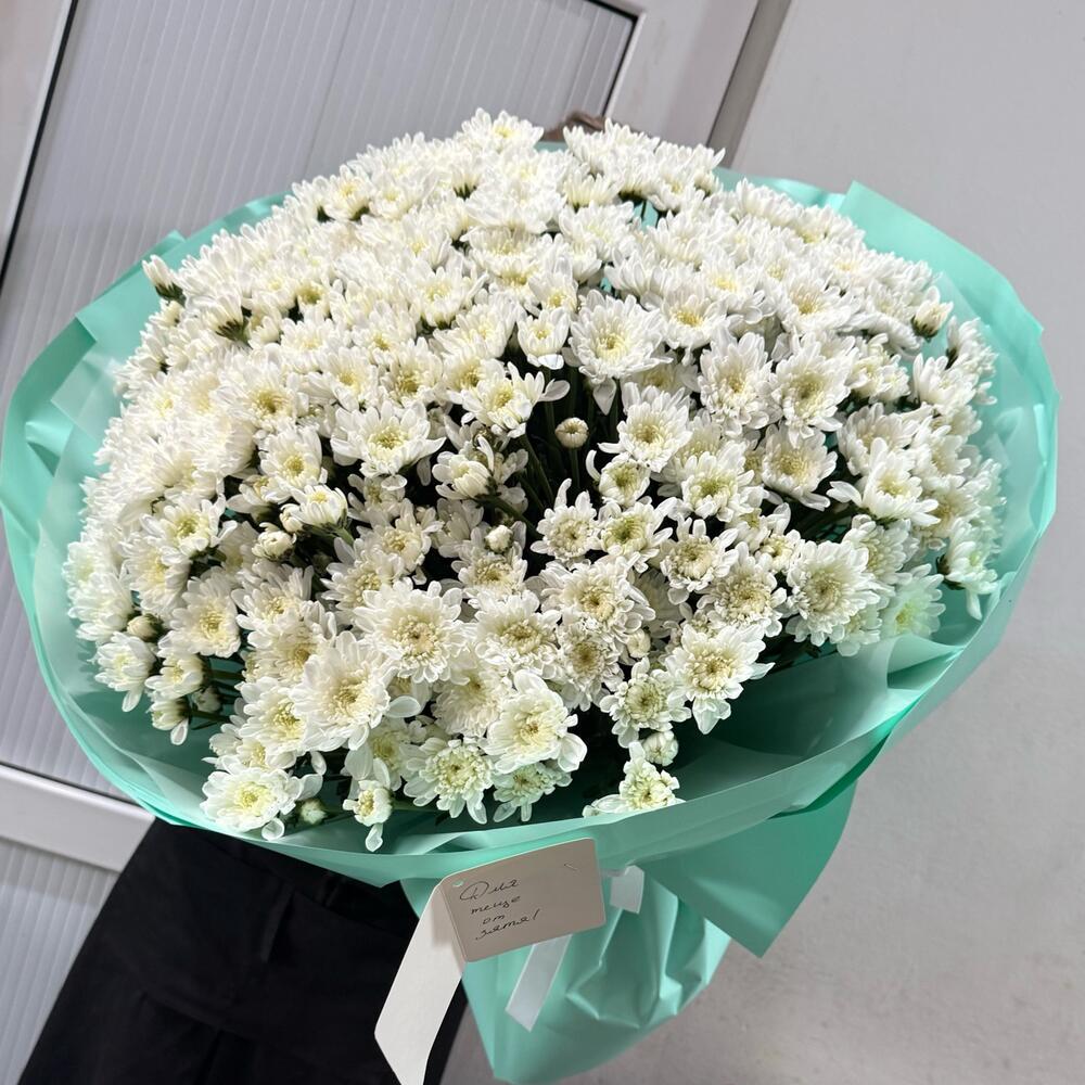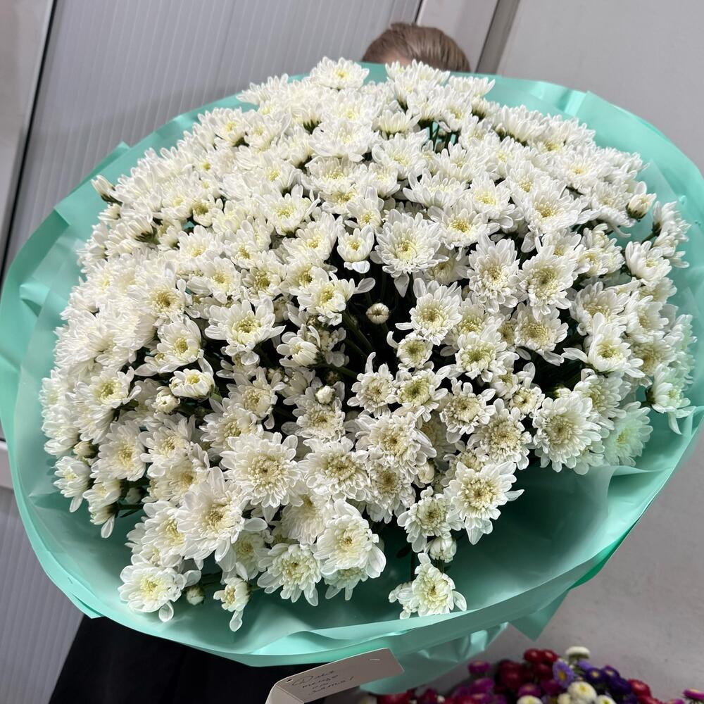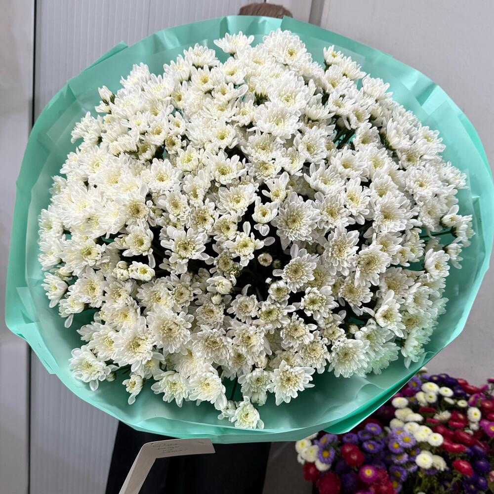 Потрясающая нежная белая кустовая хризантема.Облако из хризантем порадует Ваших близких на долго.Хризантема самый стойкий цветок