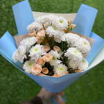Bush rose - 4 pcs Chrysanthemum bush white - 3 pcs Designer packaging - 3 pcs