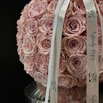 Изысканный ансамбль из 45 стабилизированных роз нежно-розового цвета украшает этот шедевр флористики. Композиция обвязана атласной лентой с фирменным логотипом Infinity Roses и установлена в стильной металлизированной вазе. Этот ароматный симпозиум цвета и стиля станет идеальным дополнением к любому интерьеру и подарит чувство радости и удовлетворения на долгое время.