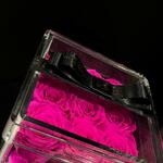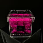 акриловый прозрачный бокс с логотипом infinity - 1 pcs стабилизированные розы (фуксия пудрово-коричневый голубой) - 9 pcs атласная лента (в тон композиции) - 1 pcs