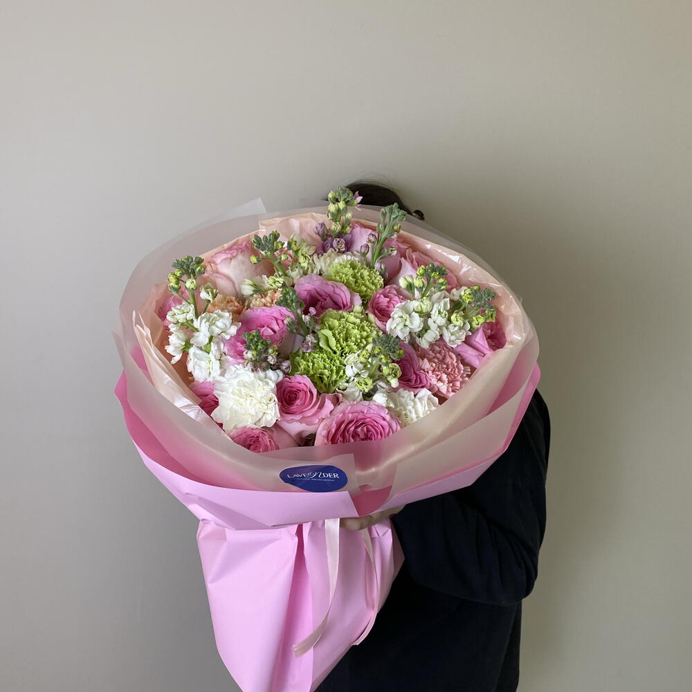 Matthiola - 9 pcs Dianthus - 10 pcs Dutch Rose - 13 pcs