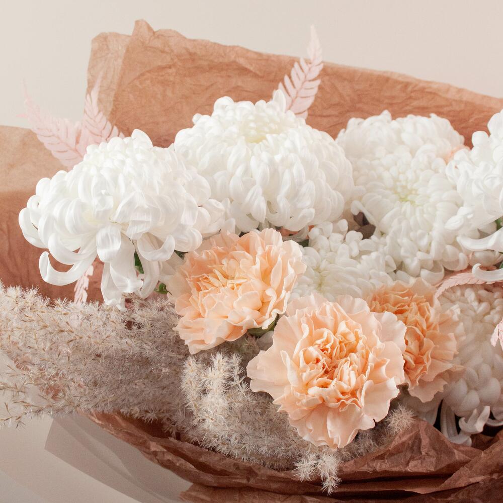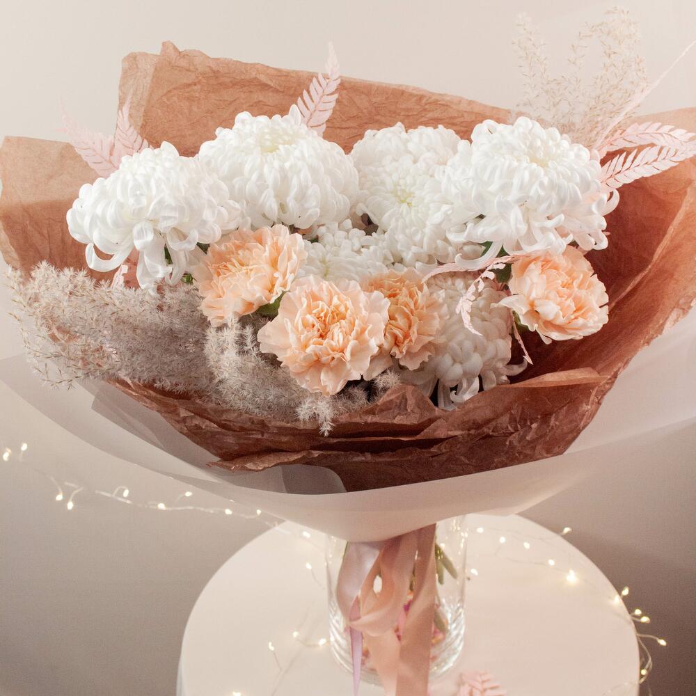 Carnation - 5 pcs Chrysanthemum one - headed - 6 pcs Decoration - 1 pcs fern - 1 pcs