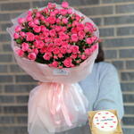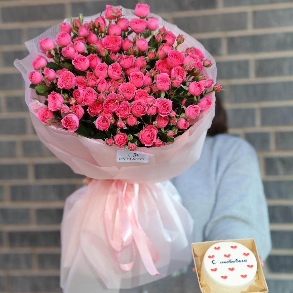 Combo bouquet of spray roses with bento cake