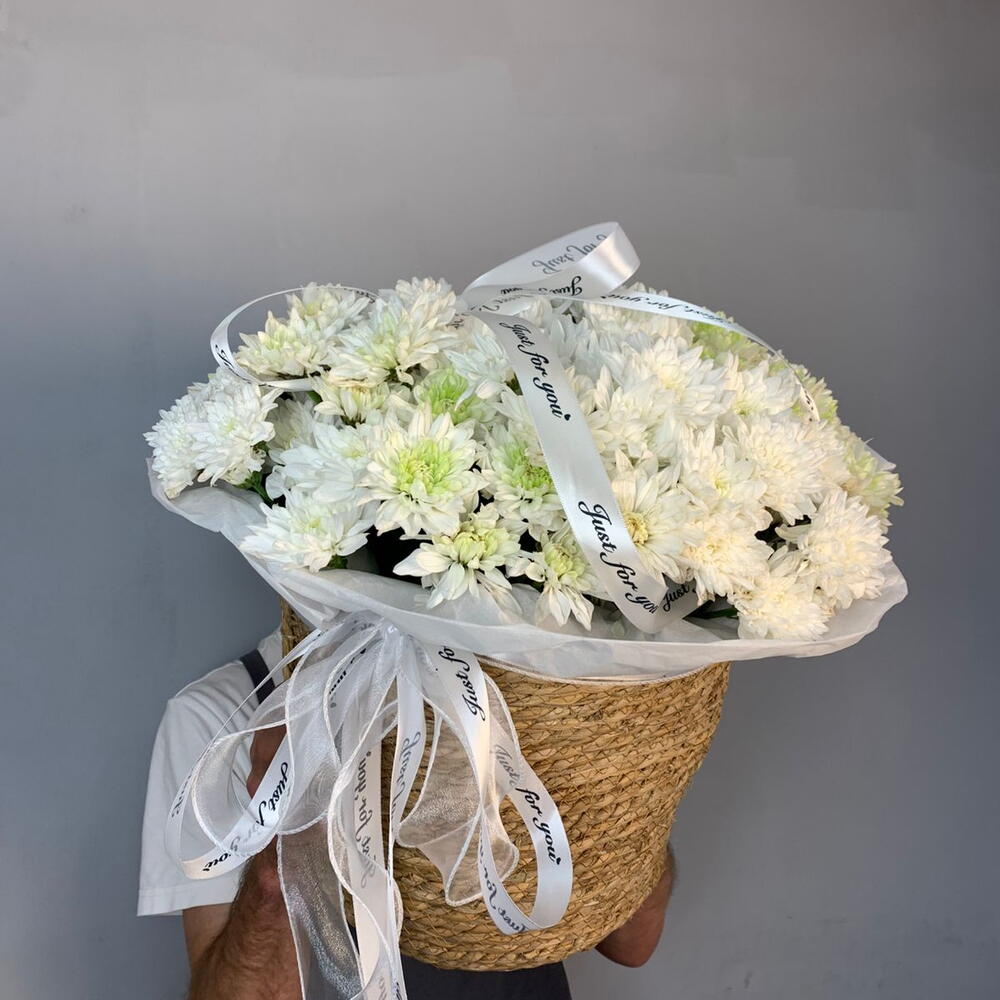 🤍 «Белоснежная Свежесть» 🤍 Воздушный букет из 7 кустовых хризантем Балтика белоснежного оттенка 🌼, символизирующих чистоту, заботу и искренность. Оформлен в стильное кашпо 🪴 и украшен белыми репсовыми лентами 🎀 — элегантный подарок, который украсит любой интерьер и подарит ощущение свежести и уюта. 💐 Идеален для благодарности, поздравления или просто тёплого жеста внимания.