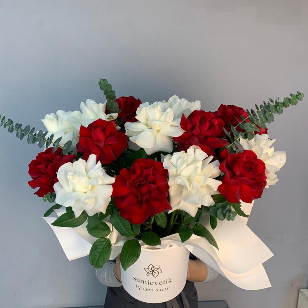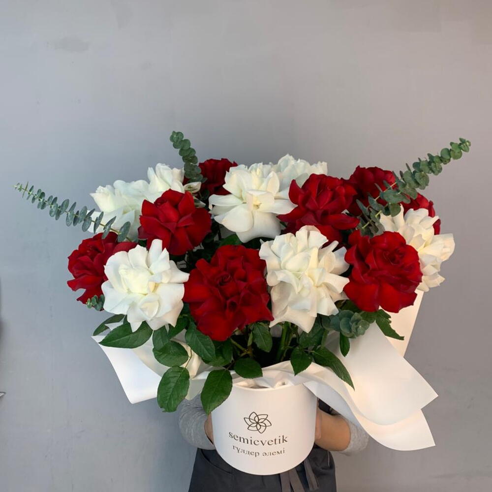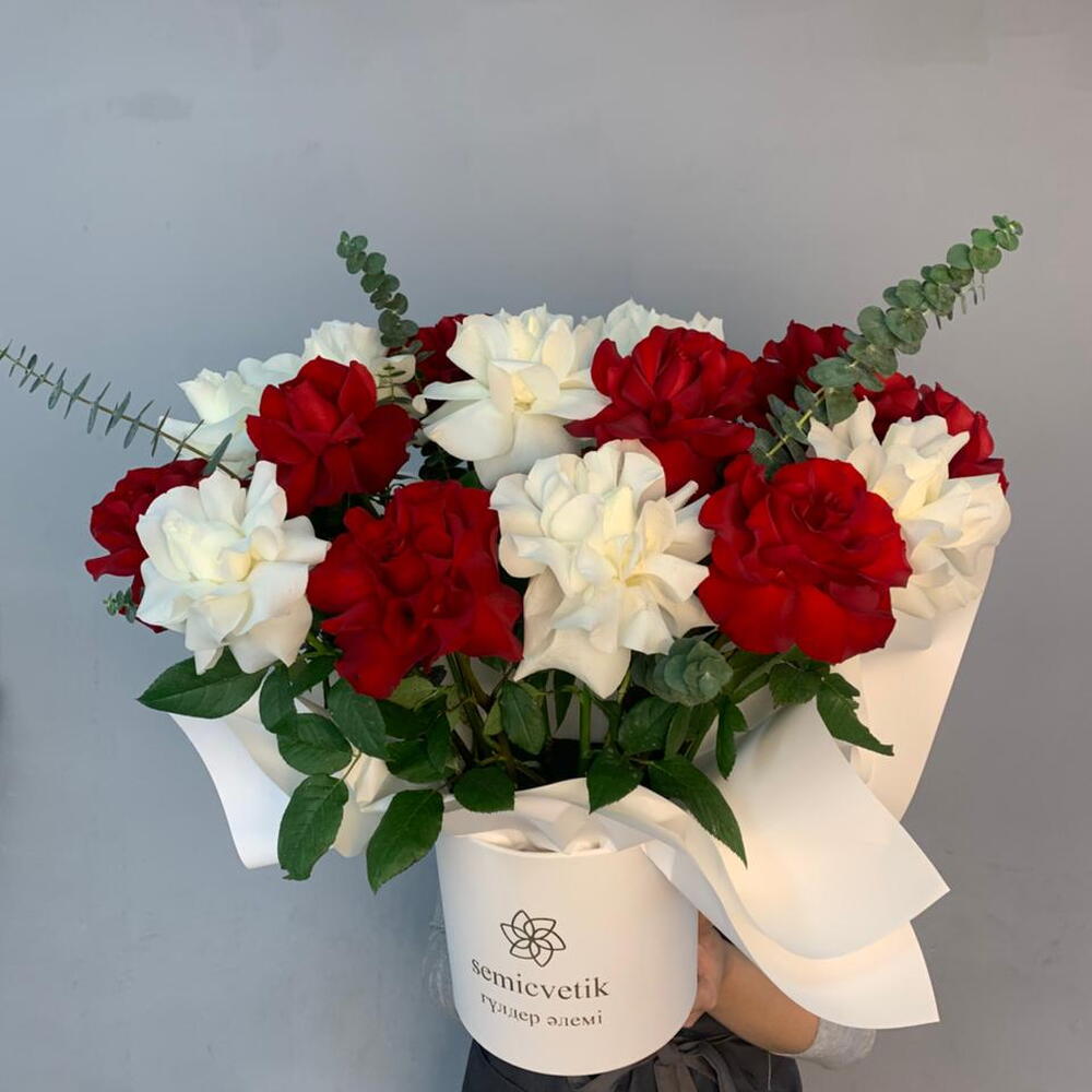 ❤️🤍 Композиция 186 — “Контрастная Нежность” Яркое сочетание чувств и чистоты: 15 красных и белых роз 🌹 — это гармония страсти и искренности, которая говорит без слов. Свежий эвкалипт 🌿 добавляет лёгкий аромат и делает композицию воздушной и современной. Белая аква-бумага и белая коробка 🤍 подчёркивают аккуратность, нежность и премиальный стиль оформления. Композиция 186 — идеальный выбор, чтобы удивить, признаться в чувствах или просто подарить особый момент ✨