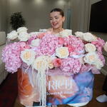 Hydrangea - 17 pcs Silence - 5 pcs Box - 1 pcs Amaranth - 3 pcs Varietal rose - 31 pcs Floral oasis - 8 pcs