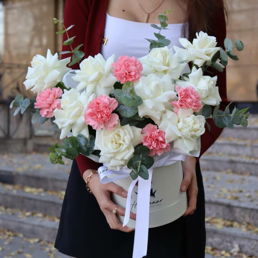 Eucalyptus - 1 pcs Rose - 9 pcs Carnation - 5 pcs