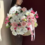 Ornamental flowerpot - 1 pcs Dianthus - 5 pcs chrysanthemums - 5 pcs bush roses - 4 pcs