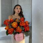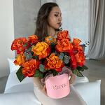 Eucalyptus - 2 pcs Designer packaging - 2 pcs Rose orange - 11 pcs Floral oasis - 1 pcs s size box - 1 pcs