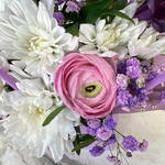 Alstroemeria - 2 pcs Chrysanthemum bush - 1 pcs Satin ribbon - 1 pcs Floral oasis - 1 pcs paper film - 1 pcs Ранункулус - 1 pcs сумочка xs картон - 1 pcs гипсафила ветка - 1 pcs
