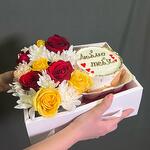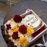 Chrysanthemum bush - 5 pcs Rose - 6 pcs Box - 1 pcs bento cake - 1 pcs