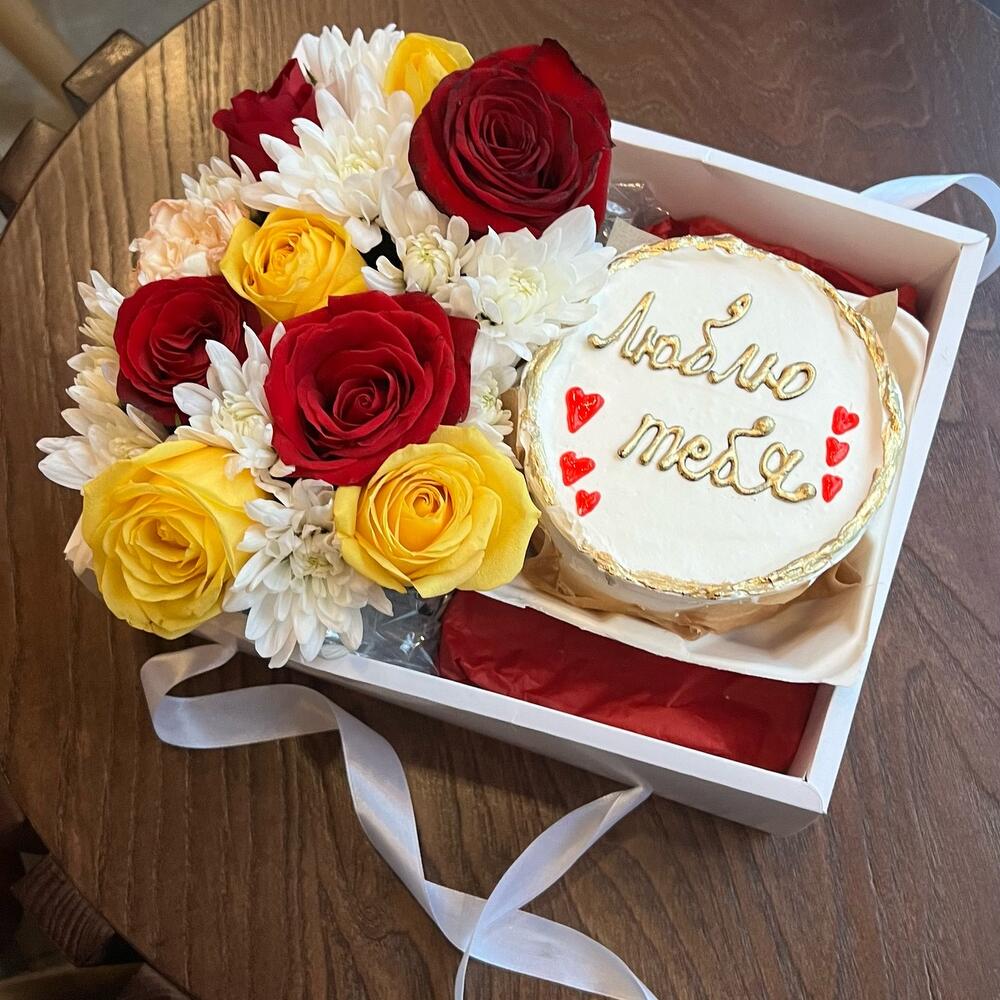 Chrysanthemum bush - 5 pcs Rose - 6 pcs Box - 1 pcs bento cake - 1 pcs