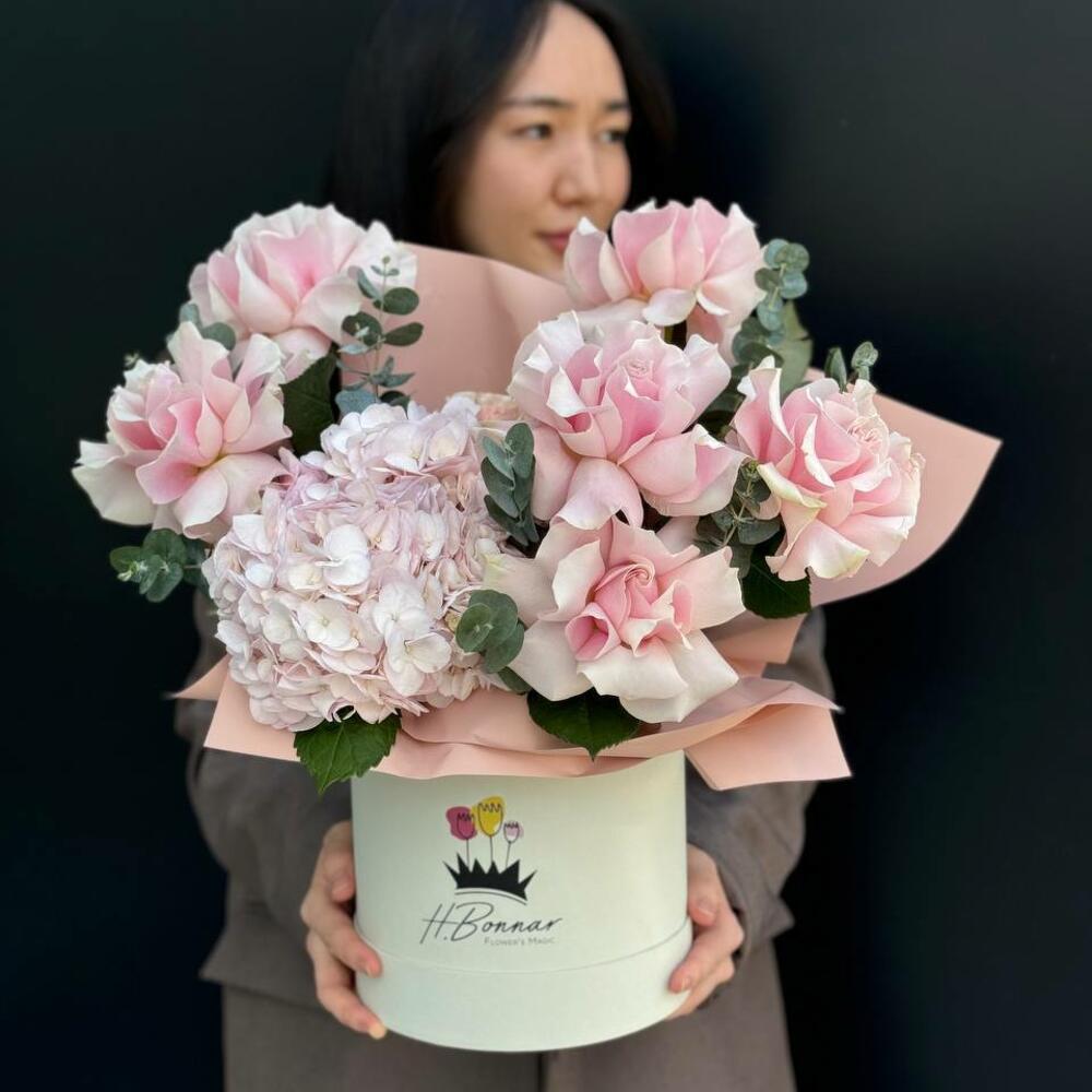 Hydrangea - 1 pcs Rose - 7 pcs