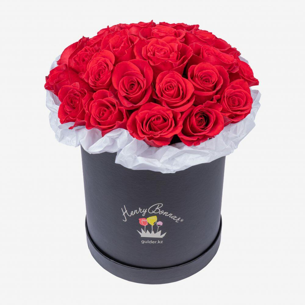 Яркая и женственная композиция из 35 красных голландских роз в шляпной коробке создаст приятную атмосферу любви и гармонии в Вашем доме. Обрадуйте Вашу любимую таким прекрасным цветочным подарком!