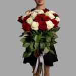 100-сантиметровые розы микс — символ безграничной любви и силы чувств. Без оформления, только цветы — эффектно, смело, незабываемо. Букет для тех, кто любит по-настоящему.