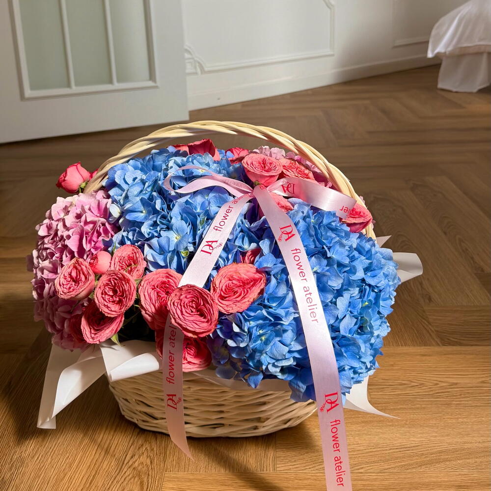 Этот изысканный авторский букет станет настоящим украшением любого торжества или события. Нежные кустовые розы в количестве семи штук удачно сочетаются с пятью роскошными королевскими гортензиями, создавая неповторимый цветовой аккорд. Каждый элемент букета подобран с особой тщательностью и любовью, что делает его прекрасным символом восхищения и искренних чувств. Этот букет - превосходное дополнение к вашему подарку и незабываемый элемент украшения любого интерьера.