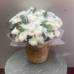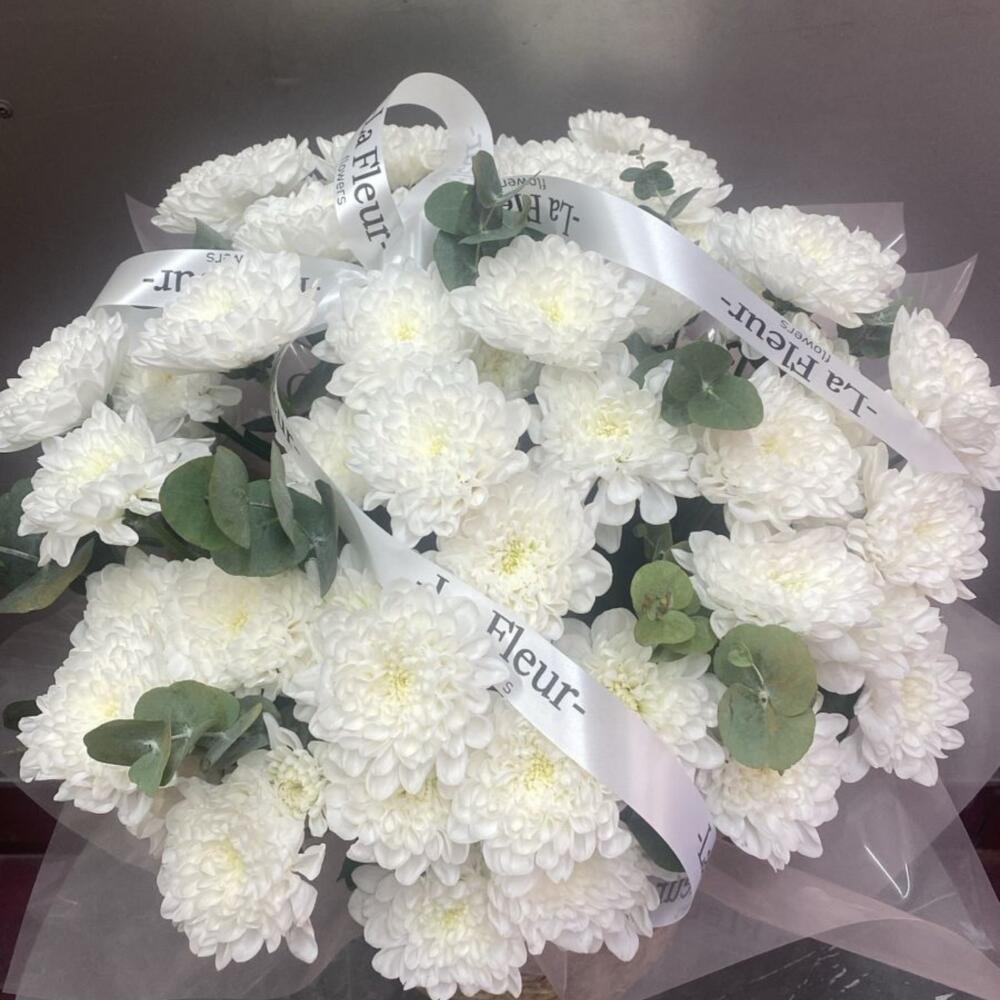 Композиция из белых кустовых хризантем который подарит радость. Плюс композиции не требует вазы