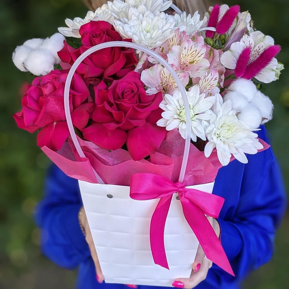 🌸 Яркая композиция в сумочке из голландских цветов 🌺 Только свежие цветы 💧 Собрана на флористической губке, ваза будет не нужна