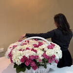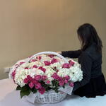 Basket wicker with oasis - 1 pcs peony spray rose - 20 pcs hydrangea premium mix - 21 pcs