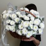 Tape - 2 pcs Chrysanthemum bush - 11 pcs Eucalyptus - 1 pcs Basket wicker - 1 pcs Floral oasis - 2 pcs