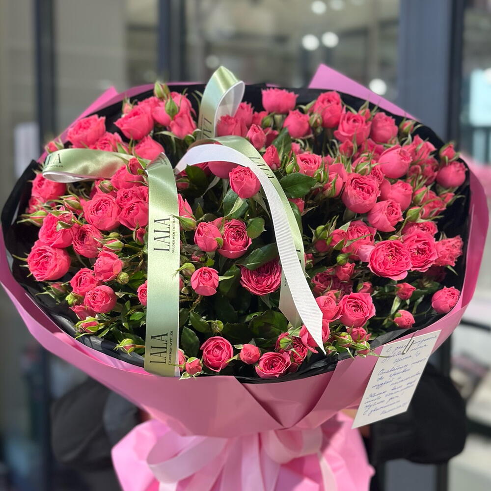 spray roses in a basket - 17 pcs