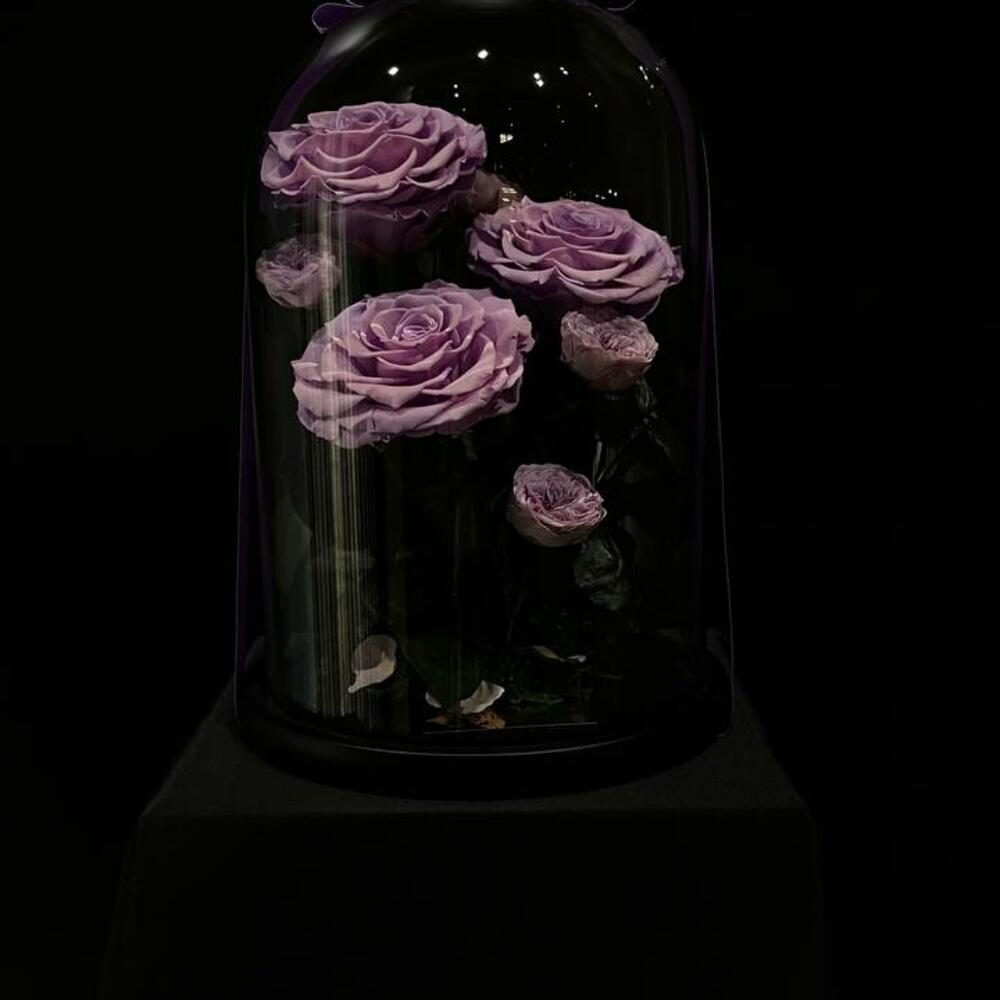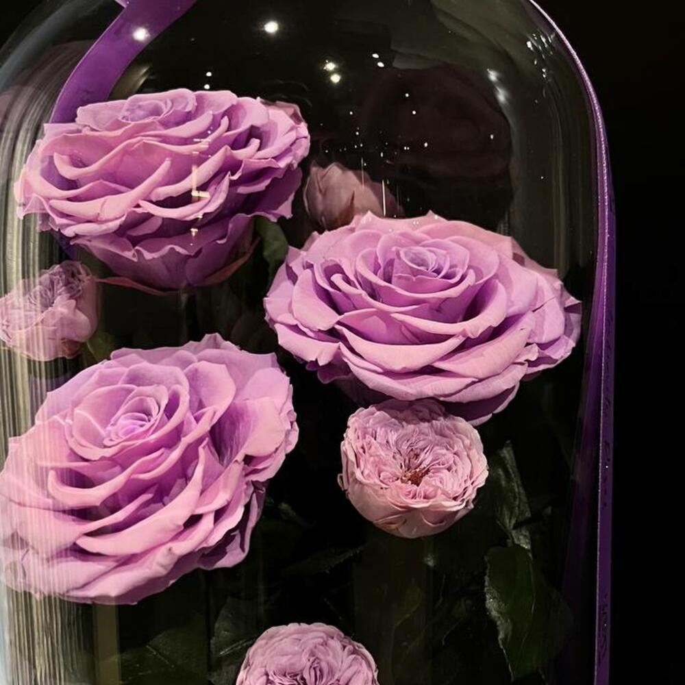 Glass flask - 1 pcs стабилизированные розы в оттенке лаванды - 5 pcs
