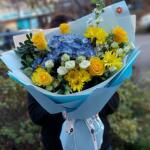 Alstroemeria - 3 pcs Hydrangea - 1 pcs Matthiola - 2 pcs Chrysanthemum bush - 2 pcs Rose - 5 pcs Spray rose - 2 pcs pistachio greens - 1 pcs