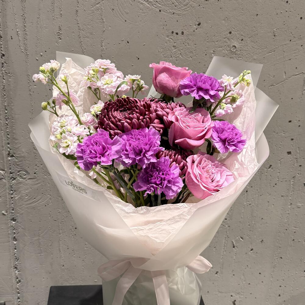 Matthiola - 3 pcs Carnation - 5 pcs Chrysanthemum one - headed - 3 pcs roses - 3 pcs
