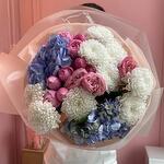 Hydrangea - 2 pcs Bush rose - 3 pcs Chrysanthemum - 3 pcs