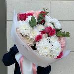 Hydrangea - 2 pcs Eucalyptus - 1 pcs Bush rose - 2 pcs Chrysanthemum - 3 pcs