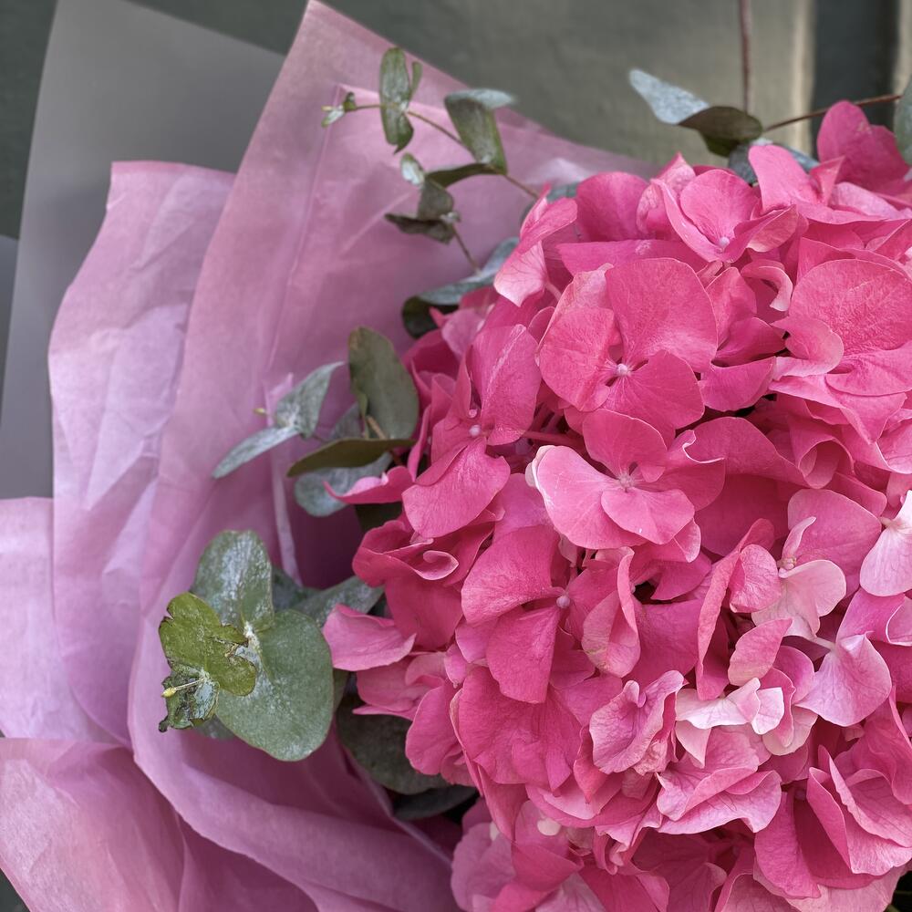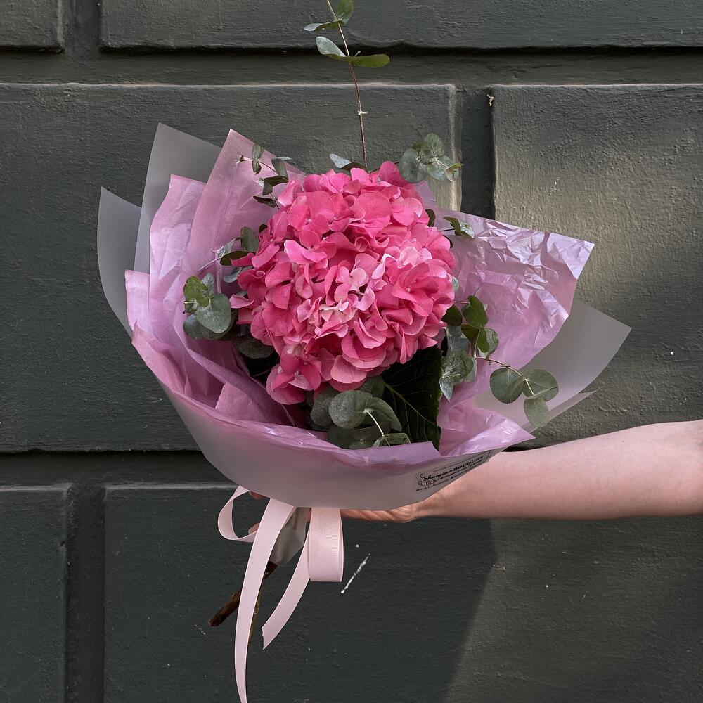 Hydrangea - 1 pcs Eucalyptus - 1 pcs Packaging - 1 pcs Aquabox - 1 pcs carrying for flowers - 1 pcs