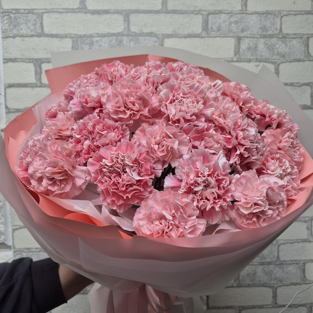Carnation - 25 pcs Satin ribbon - 1 pcs Paper - 8 pcs Tishyu white - 3 pcs