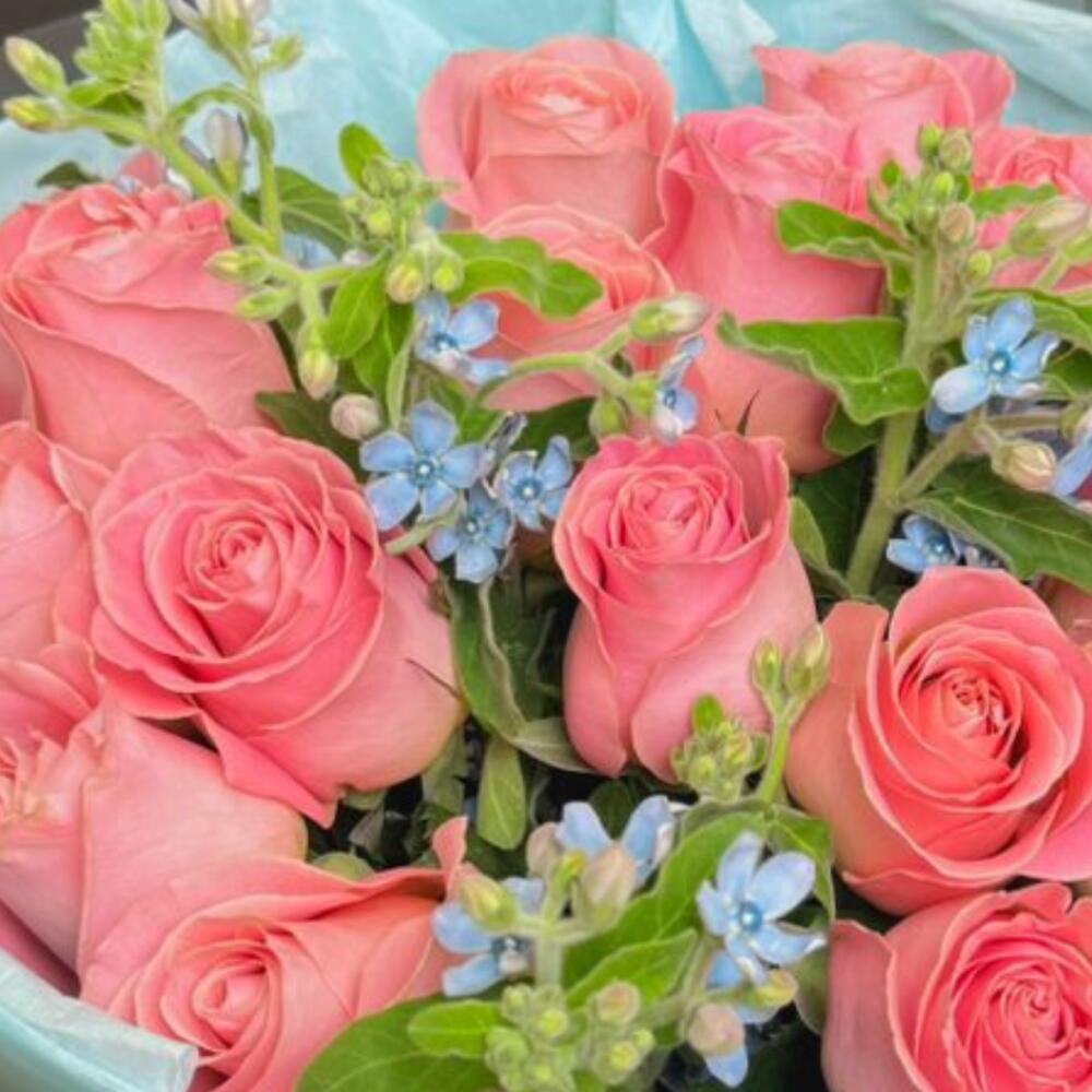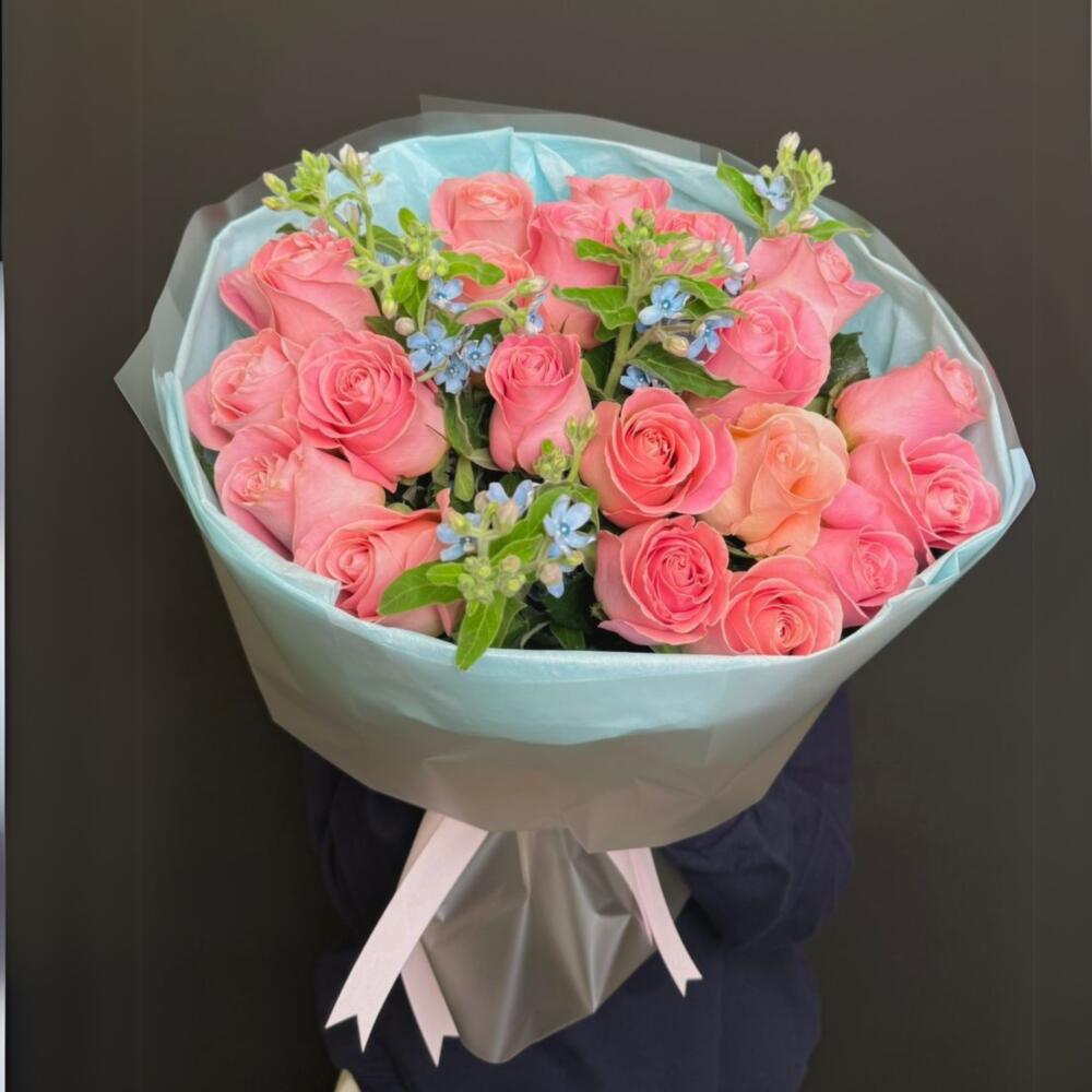 21 роза и твидия — гармоничное и воздушное сочетание. Букет для романтичных признаний и торжественных событий.