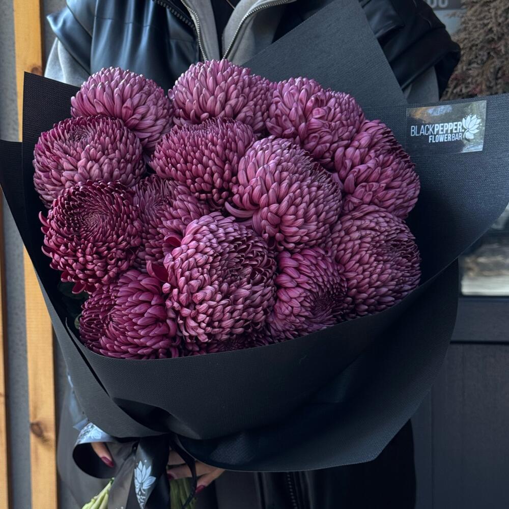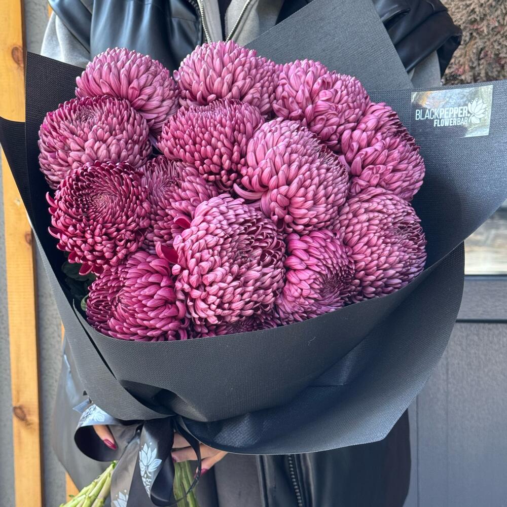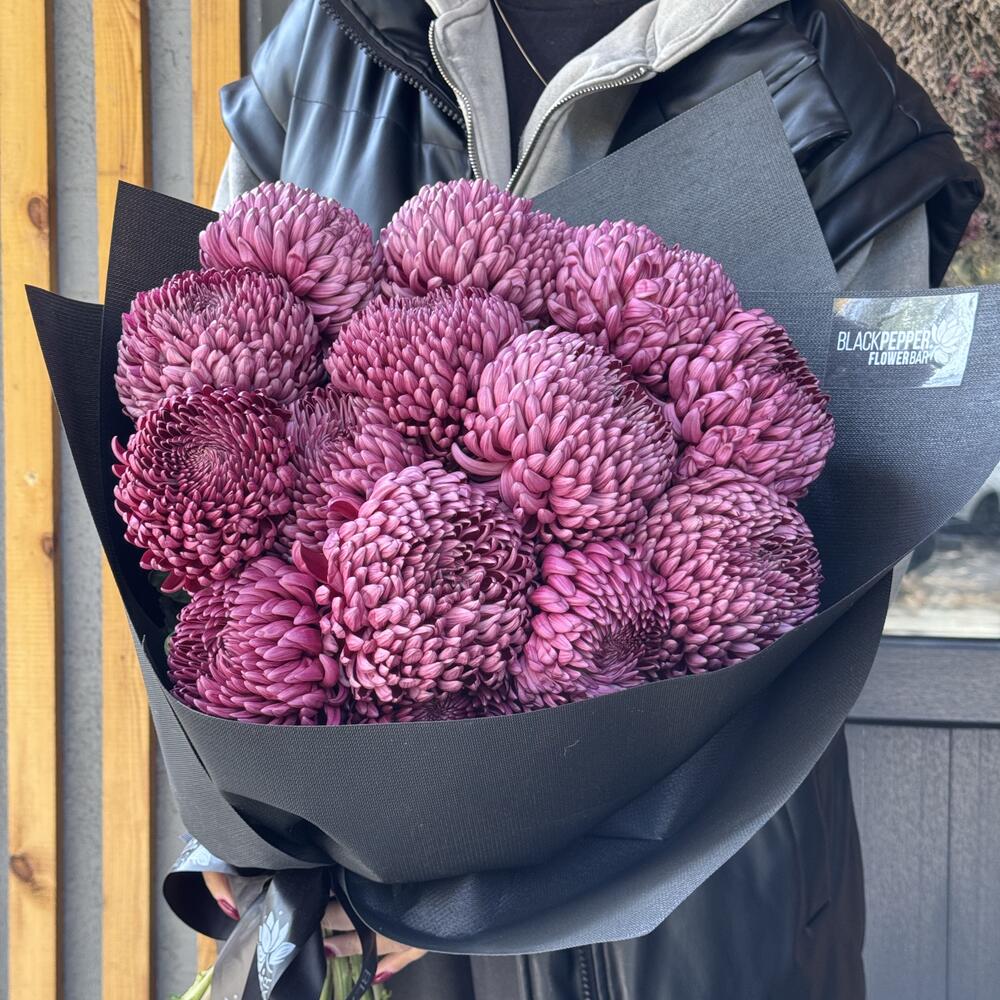 Этот великолепный монобукет из 15 одноголовых хризантем станет отличным подарком для любого случая. Эти пышные и крупные цветы обладают особенной эстетической красотой и ярким, насыщенным цветом, который обязательно привлечет внимание. Хризантемы долго сохраняют свою свежесть и первозданную прелесть, что позволит настроению праздника длиться как можно дольше.