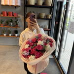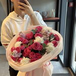 Matthiola - 4 pcs Eucalyptus - 4 pcs Chrysanthemum - 5 pcs bush roses - 8 pcs