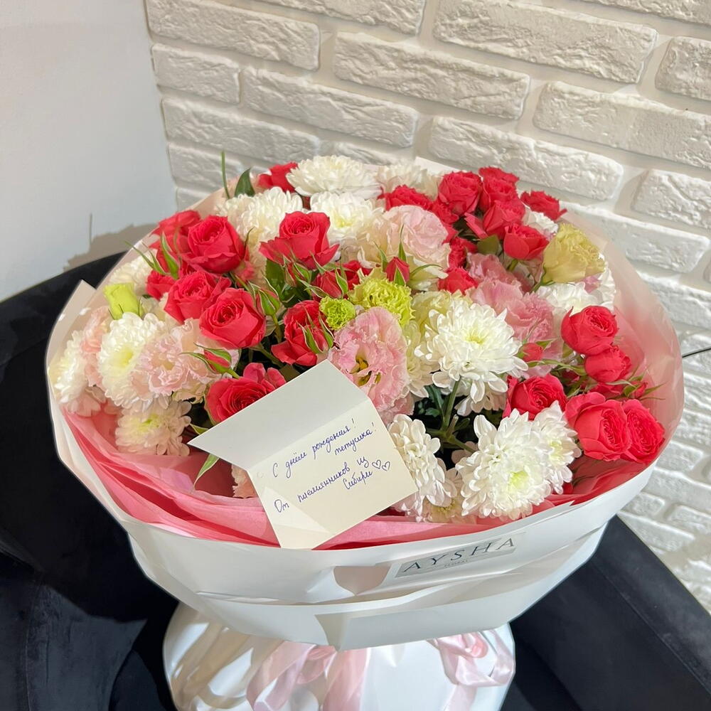 Lisianthus - 5 pcs Chrysanthemum bush - 5 pcs Bush rose - 5 pcs