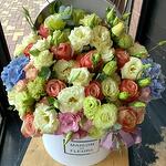 hydrangeas - 2 pcs roses - 11 pcs bush roses - 3 pcs Lisianthus - 5 pcs
