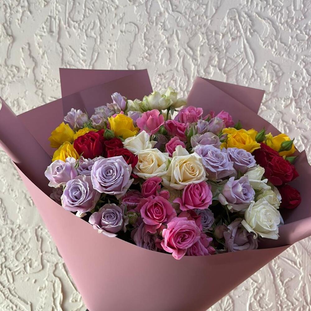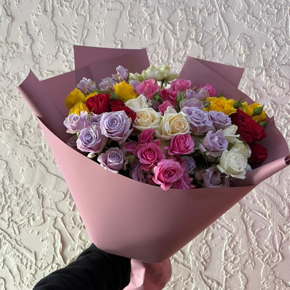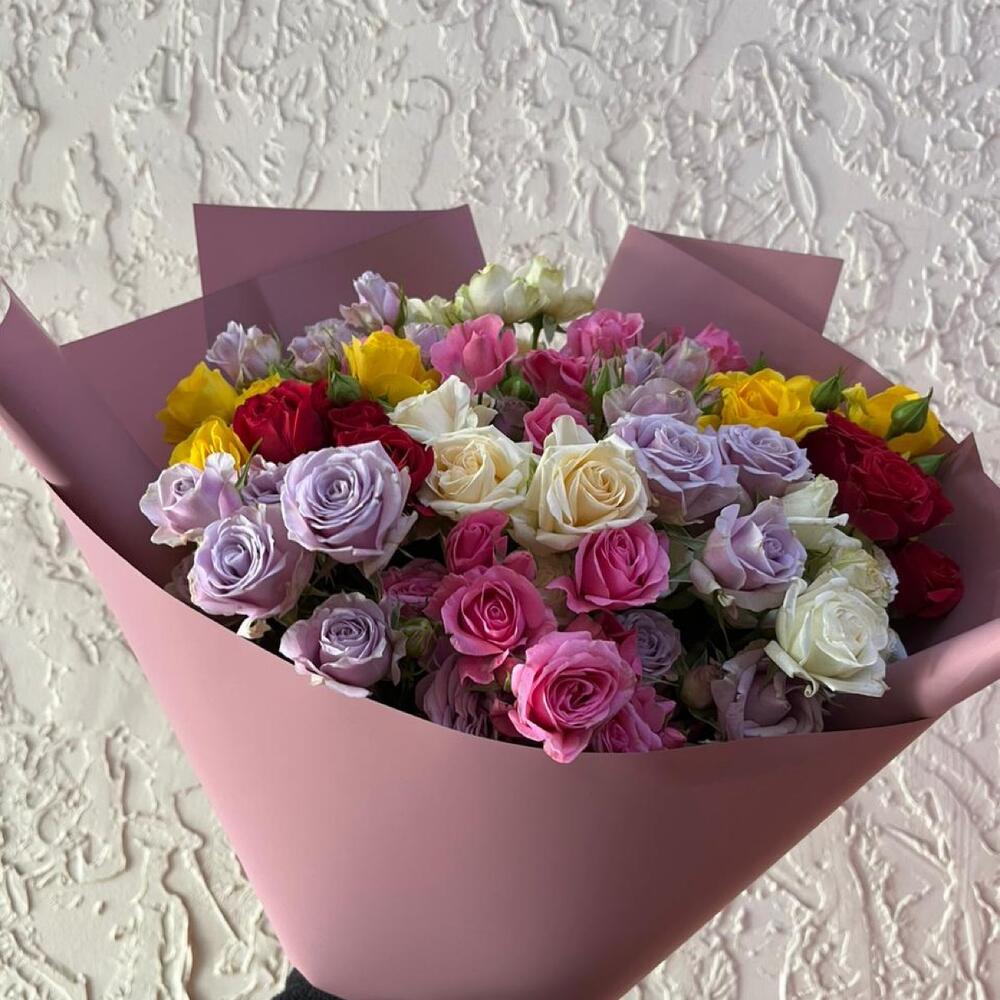Яркий букет из кустовой розы прекрасно подходит для подарка и для украшения вашего дома красками!