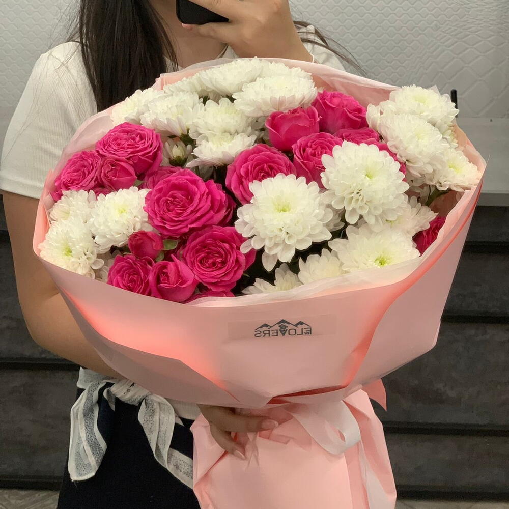 Chrysanthemum bush - 4 pcs Designer packaging - 1 pcs bush rose ecuador - 3 pcs